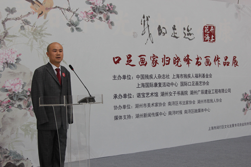 11月4日上午,由中國殘疾人雜志社、上海殘疾人福利基金會(huì)、上海國際康復(fù)活動(dòng)中心、國際口足畫藝協(xié)會(huì)主辦,諾寶藝術(shù)館、湖州女子書畫院、湖州廣辰建設(shè)工程有限公司承辦的“花開海上”口足畫家歸曉風(fēng)書畫作品展在諾寶藝術(shù)館舉行開幕式。