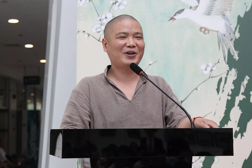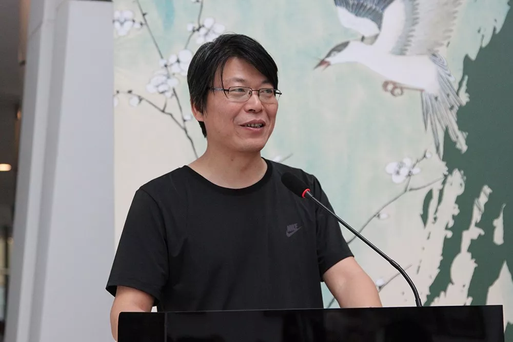 美術(shù)學博士、藝術(shù)學博士后、南京財經(jīng)大學藝術(shù)設(shè)計學院教授,南京市青年美術(shù)家協(xié)會副主席、江蘇省徐悲鴻研究會理事施建中先生作為嘉賓代表講話。