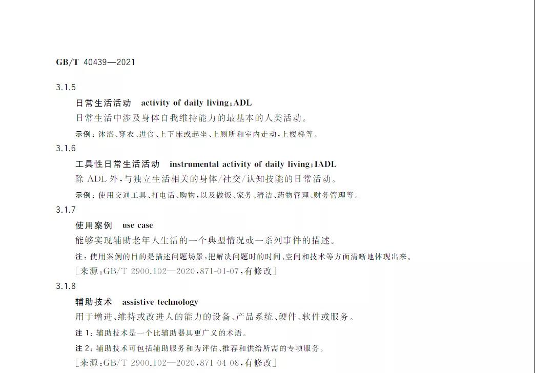 人口老齡化是21世紀(jì)人類社會(huì)共同面臨的重大問(wèn)題,隨著我國(guó)人口老齡化的加快,國(guó)家高度重視養(yǎng)老和產(chǎn)品適老化問(wèn)題。8月20日,國(guó)家市場(chǎng)監(jiān)督管理總局、國(guó)家標(biāo)準(zhǔn)化管理委員會(huì)發(fā)布了GB/T 40439-2021《用于老年人生活輔助的智能家電系統(tǒng) 架構(gòu)模型》和GB/T 40443-2021《適用于老年人的家用電器 通用技術(shù)要求》適老家電國(guó)家標(biāo)準(zhǔn),實(shí)施日期為2022年3月1日。