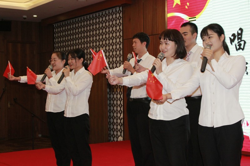 比賽現(xiàn)場歌聲嘹亮、激情澎湃,員工們揮舞著五星紅旗為參賽隊(duì)加油。選手們用十八首歌頌黨、歌頌祖國的參賽歌曲向祖國七十華誕獻(xiàn)禮,飽含深情的演唱,贏得了評委及參加員工的熱烈掌聲,也展現(xiàn)了諾寶中心干部員工對黨的無限熱愛,對祖國母親的深深祝福。