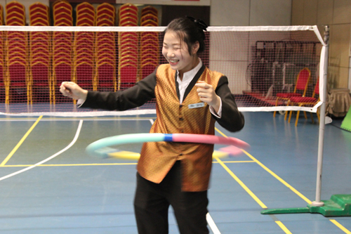 運(yùn)動會設(shè)置了三人四足、羽毛球單打、3人斗地主和轉(zhuǎn)呼啦圈4個(gè)項(xiàng)目。在裁判介紹比賽規(guī)則的同時(shí),運(yùn)動員們躍躍欲試,即將投入比賽的歡樂聲飛揚(yáng)在運(yùn)動場的每個(gè)角落,每一名參賽隊(duì)員都洋溢著豪情歡笑,他們將要在比賽中各盡所能、展現(xiàn)自我,發(fā)揮出自己的特長。